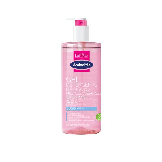 Detergente delicato per corpo e capelli, privo di tensioattivi aggressivi ad alta tollerabilità cutanea. Formula biodegradabile. Olio di riso da agricoltura biologica nutriente, proteine del riso idratanti. IPOALLERGENICO.