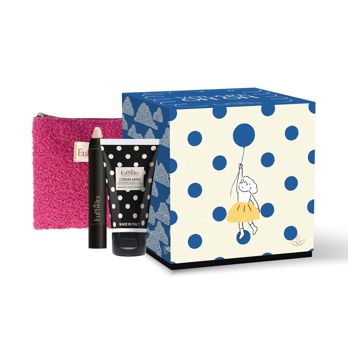 Un cofanetto leggero e spensierato: una coccola per le mani, un balsamo labbra sempre con te e una pochette pratica da portare ovunque. Il regalo ideale per chi ama volare alto… senza perdere la dolcezza.